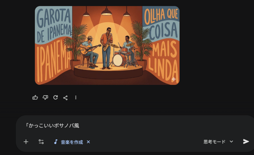 1. イメージを決める: Geminiに「かっこいいジャズ」や「爽やかなボサノバ」と伝えます。