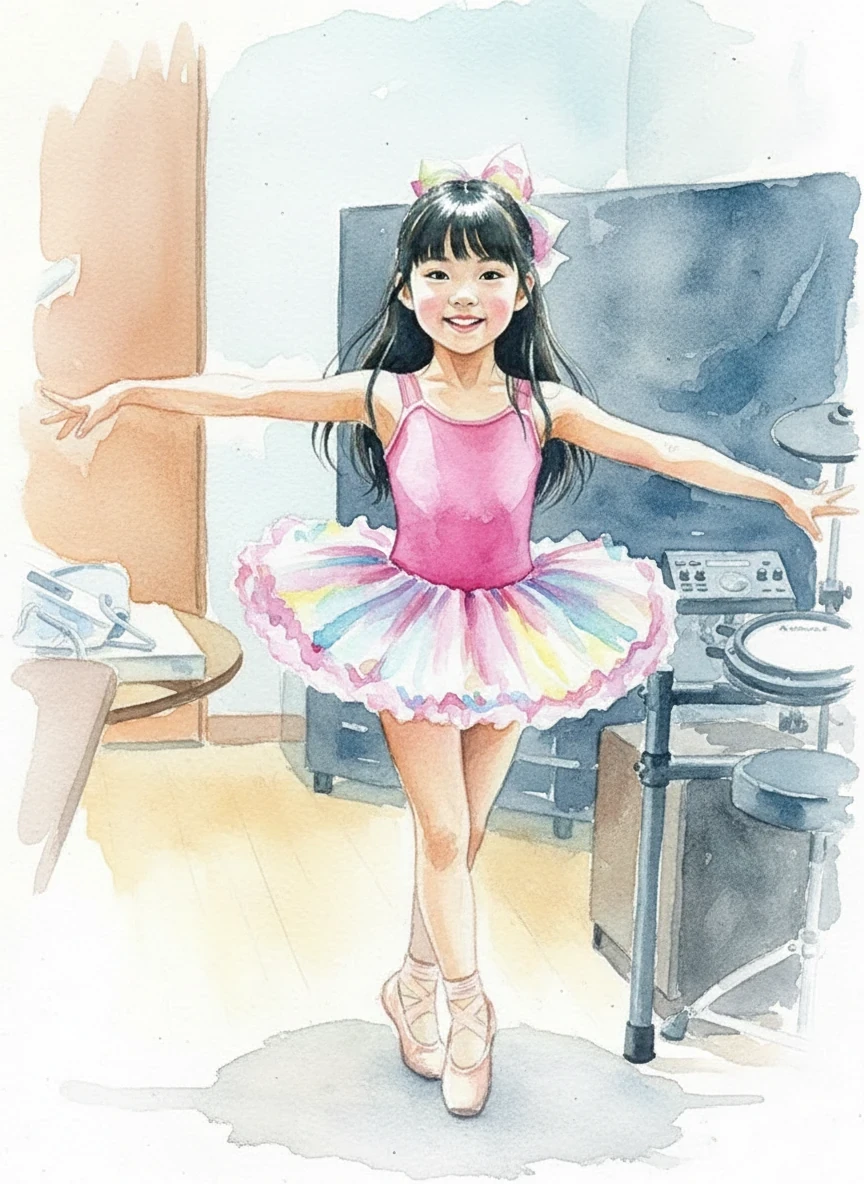 まずは、お気に入りのチェックのワンピースを着た孫の写真を、AIツール「SeaArt」を使って水彩画風のアバターに変換しました。 ずぼらダイエットブログでおなじみの、あの優しくて温かいタッチです。これだけでも十分可愛いのですが、今回の目標は「キレ」です。